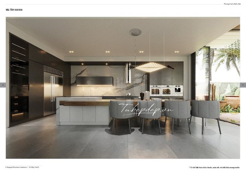 Để tạo ra một không gian rộng và ấm cúng, một khu vực nội trợ và ẩm thực được đầu tư. Ngoài khu vực bếp nấu tiện nghi, bộ bàn ăn 8 ghế hiện đại cũng góp phần tạo nên sự hoàn hảo của căn phòng.
